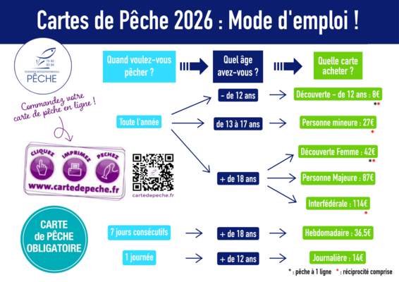 Retrouvez toutes les infos utiles pour se procurer une carte de pêche sur cette page : liste des dépositaires, tarifs, choix de la carte, et répartition de l'argent.